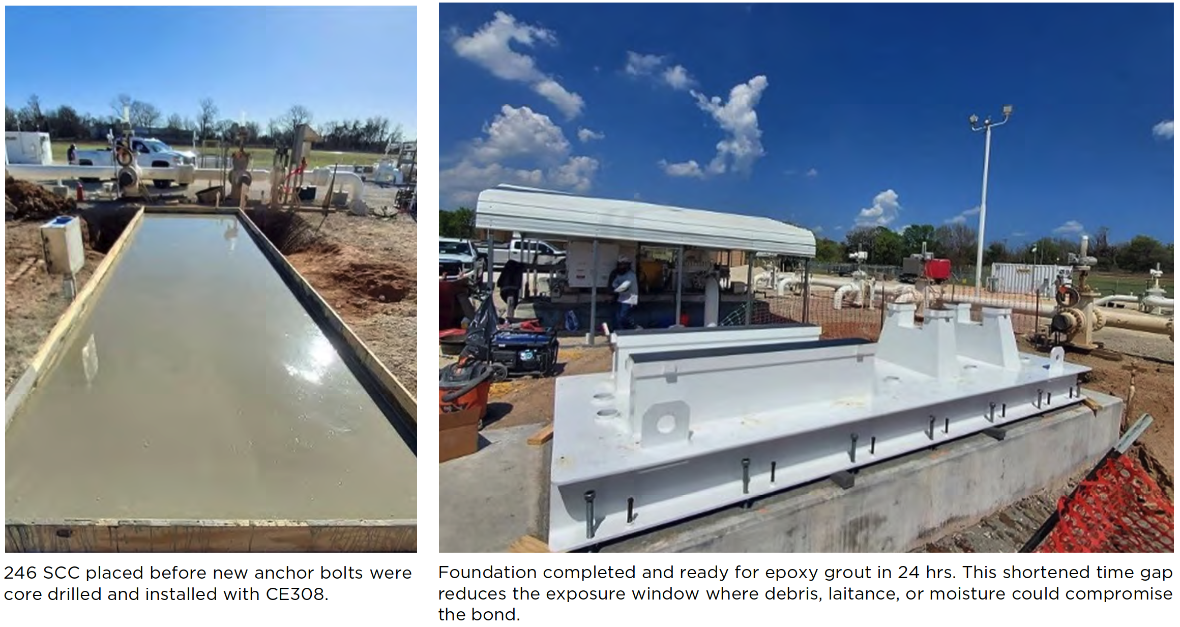 b) Reduced Project Delays – On industrial projects, foundation and grouting are often on the critical path. Being able to grout after 24 hours allows construction teams to overlap schedules, keeping the project moving efficiently.